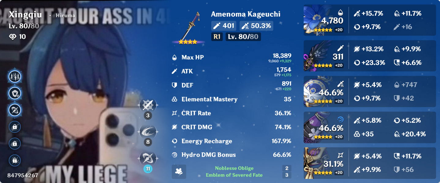 Ideal Rotation: Raiden E -> Xiangling E -> Kazuha hold E -> Kazuha Q -> Xingqiu E -> Xingqiu Q -> Xiangling Q -> Raiden Q, repeat
